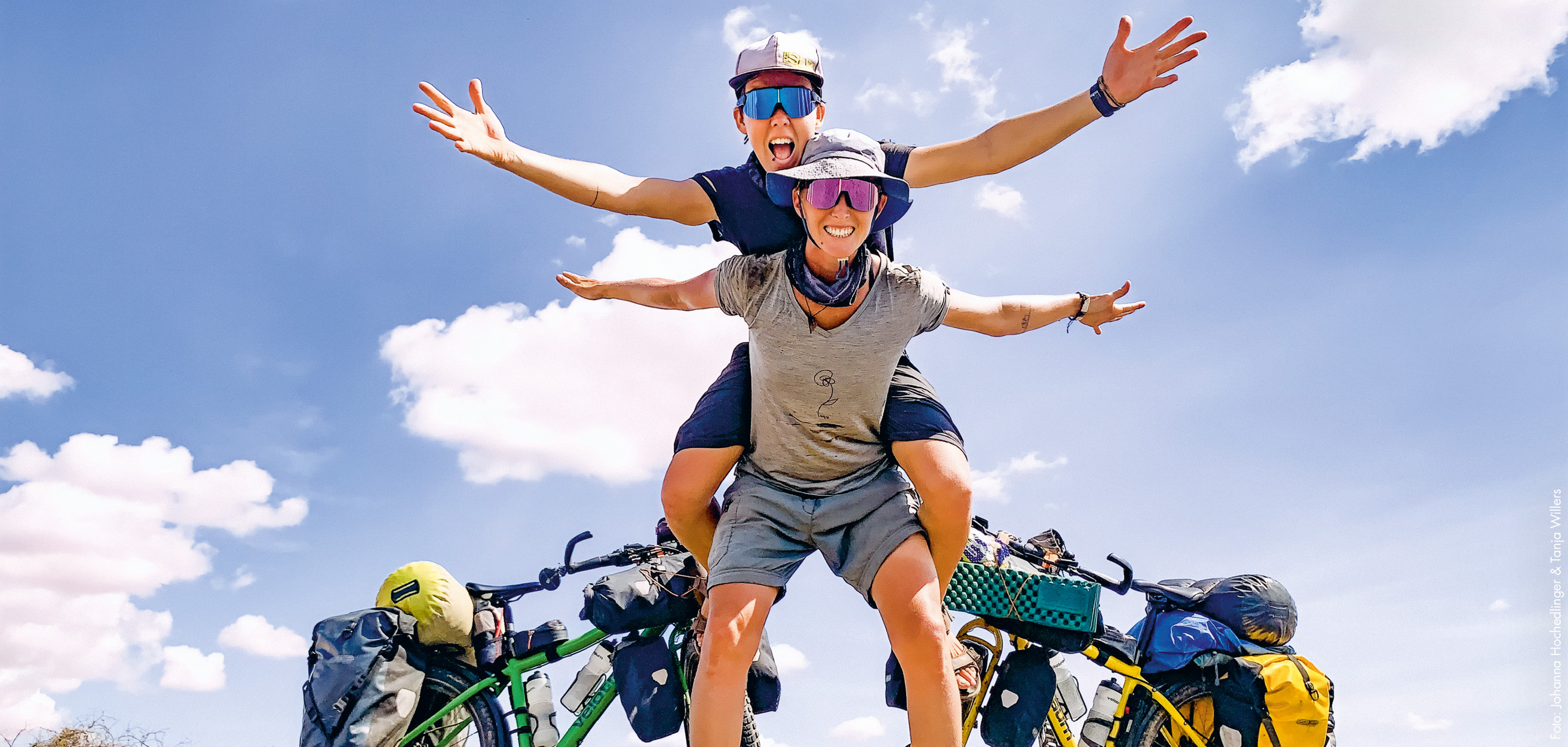 Die Reise von Kapstadt nach Wien dauert 15 Monate, dabei fahren Tanja und Johanna 24'000 Kilometer weit durch 21 Länder. Es ist ihre erste grosse gemeinsame Fahrradtour. Sie testen nicht nur Muskeln und Nerven, sondern auch ihre Beziehung, denn so ein Abenteuer wird schnell zur Zerreissprobe. Sie schreien einander an, lachen einander aus und erinnern einander daran, Ruhe zu bewahren, wenn die andere mal wieder die Nerven verliert. Was oft genug vorkommt ‒ auch auf der Bühne.